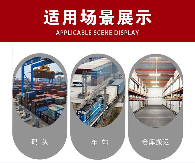 裝卸頻繁、企業(yè)、倉(cāng)庫(kù)、車(chē)站、碼頭、倉(cāng)儲(chǔ)物流基地、郵政運(yùn)輸、物流配送等單位的貨物裝卸。