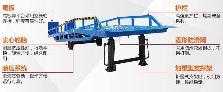 裝卸登車橋-移動(dòng)式機(jī)械登車橋用于無裝卸設(shè)備的貨臺及流動(dòng)裝卸場所,是與叉車配合使用的貨物裝卸輔助設(shè)備。借助移動(dòng)式登車橋,叉車能直接駛?cè)肫嚰b箱內(nèi)部進(jìn)行批量裝卸作業(yè)。只需單人操作,不需動(dòng)力電源,即可實(shí)物的安全快速裝卸。