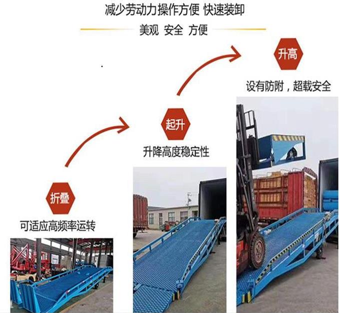 聊城登車橋-貨臺裝車升降平臺-電動液壓固定登車橋-集裝箱卸貨平臺-是實物快速裝卸的輔助設備,它的高度調(diào)節(jié)功能使用貨車與庫房的貨臺之間架起一座橋梁,叉車等搬駛及貨車內(nèi)部進行貨物的批量裝卸,僅需單人作業(yè),即可實物的快速裝卸。它使企業(yè)減少大量勞動,提高工作效率,獲取更大經(jīng)濟效益。